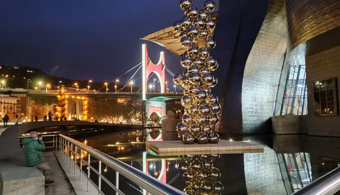 Il Museo Guggenheim di Bilbao è un museo d'arte moderna e contemporanea, famoso per la sua architettura stravagante, progettata dall'architetto canadese Frank Gehry, e per la sua vasta collezione di opere d'arte contemporanea spesso incomprensibili, ma ugualmente piacevoli, si possono ammirare alcune delle più importanti opere d'arte del XX e XXI secolo, tra cui sculture, pitture, installazioni e video. La collezione del museo comprende opere di artisti famosi come Jeff Koons, Pablo Picasso, Claes Oldenburg, e Joan Miró, tra gli altri.