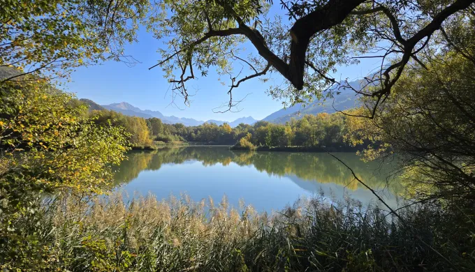 Il sentiero costeggia una parte di fiume e di lago con degli scorci caratteristici che meritano una foto ed è perlopiù su una pista ciclopedonale (ma ci sono punti in cui si cammina sulla strada sterrata).