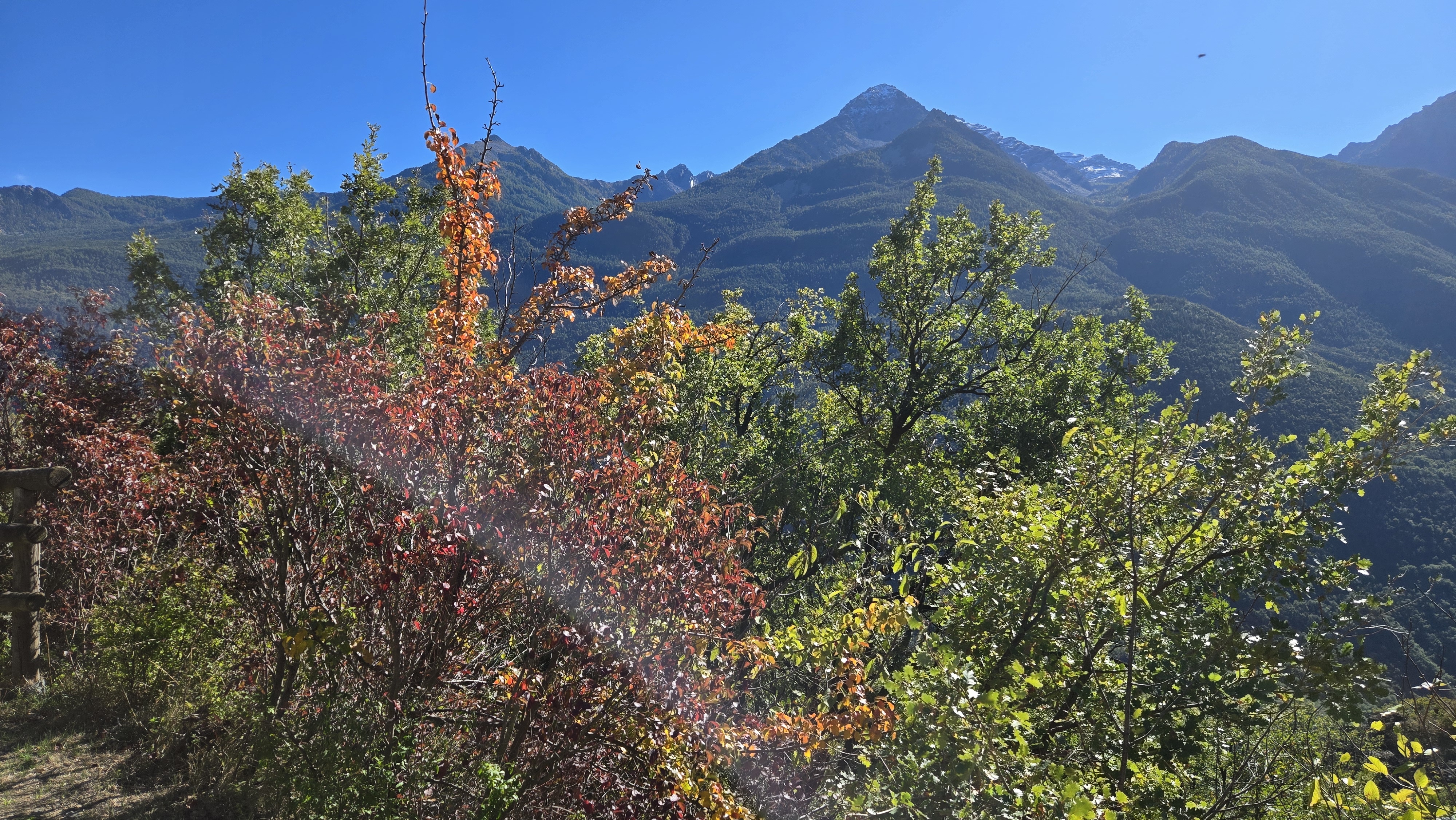 Sempre da Moline c’è questo sentiero che parte dal ponte in pietra del paese e attraversa delle vigne con scorci sulla valle. È più o meno in piano, eccetto quello finale dove per qualche minuto si scende attraverso una stradina con una mulattiera annessa (ma nulla di proibitivo, difficile o faticoso) che conduce a un paese. Il ritorno potrei farlo in pullman ma preferisco rifarmi il tragitto a piedi.