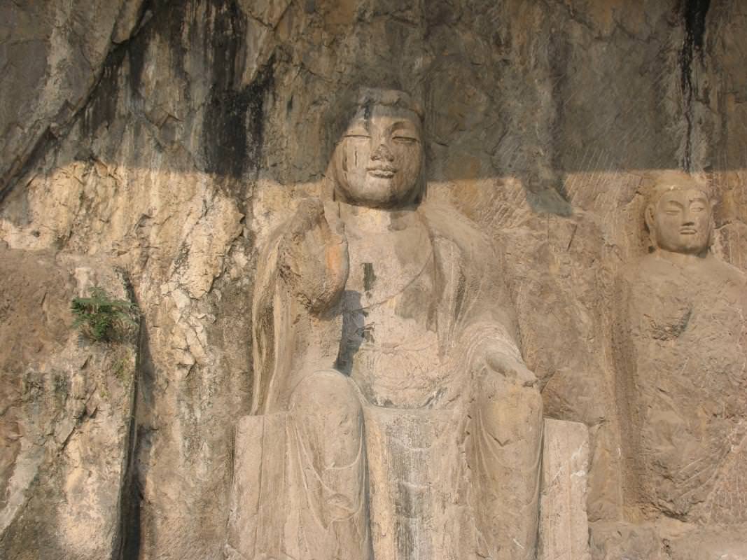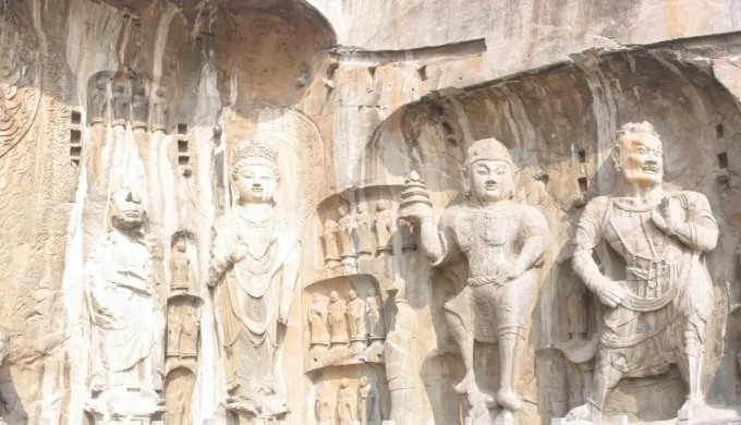 Le grotte scolpite di Longmen sono situate a 12 km in direzione sud dalla città lungo la gola scavata del fiume Yi. Un chilometro di roccia letteralmente scolpita dove si possono contare 1352 grotte di differenti misure, 750 nicchie, 39 pagode e ben 97.306 statue e 3608 iscrizioni attraverso cui è possibile vedere l'evoluzione dell'arte buddista dal V all' VIII secolo. Questa strepitosa collezione di sculture buddiste fu iniziata dai sovrani dei Wei settentrionali (386-534 d.C.) dopo aver trasferito la capitale da the Datong a Luoyang. Il tragico numero di Statue senza testa, risultato di vandalismi e furti, crea un'atmosfera solenne; oggi le grotte sono ben protette. La nostra guida è cambiata. A portarci Longmen, sempre minibus, oggi è Cesare, in verità un po' freddino nei rapporti. È comunque ben preparato, parla un buon italiano e ci spiega tutto ciò che stiamo ammirando. Non stiamo ad elencare tutte le cose viste ma quelle più che ci hanno colpito sono: la grotta dei 10.000 Buddha con al centro una magnifica statua del Buddha e quella più bella ed imponente chiamata anche tempio di Feng Xian la più grande di tutte e risale al 675 d.C. Al centro l'imponente statua di Vairocana Buddha rappresentato in posizione seduta, alta ben 17 m di cui quattro solo per la testa (l'orecchio e lungo quasi 2 m) sormontato da quattro aureole che rappresentano le vie da cui si espande la luce. Il suo sorriso enigmatico le ha fatto guadagnare il soprannome di "Monna Lisa orientale". Sulla parete di destra le magnifiche sculture del re celeste e del difensore di Buddha, di notevole pregio per il movimento e per la postura realistica. Attraversiamo il ponte sul fiume e sulla sponda opposta Cesare ci porta a visitare un tempio buddhista ma non solo, anche per svelarci una curiosità. Alle varie scale percorse per visitare le grotte si sommano le altre per raggiungere il tempio che si trova in una posizione elevata. Da lontano ammiriamo la roccia scolpita su un'altra sponda e non possiamo che restare sbalorditi. Finalmente arriviamo al tempio che ci colpisce per l'atmosfera di pace che vi si respira. Immancabili la torre del tamburo e quella della campana come i nastri gialli e rossi stesi in bella mostra per chiedere grazie tra bracieri che emanano un profumo d'incenso. Iniziamo la discesa verso il luogo d'incontro con l'autista tra sentieri immersi nel verde, laghetti e un bellissimo resort che, a detta di Cesare, ha prezzi elevatissimi e che, ci confida, abbia visto soggiornare l'ex moglie di Berlusconi con la figlia. È un gossip eccezionale! Ma tornando un' altra curiosità si mostra a noi che restiamo increduli. Qualche napoletano di non giovane età certamente ricorda il "franfelliccaro", ovvero quell'artigiano dolciario che in via Foria avvolgeva intorno ad un gancio metallico una matassa di zucchero candito lavorandola con grande fatica e che poi dopo averla ridotta ad una specie di serpentello la tagliuzzava in piccoli pezzi per la delizia dei bambini, ebbene in una bottega vedo una scena simile solo al posto che del dolciere partenopeo ve ne è uno cinese! Chiedo se questa attività ha una vecchia tradizione e mi viene risposto che lo è e pertanto mi chiedo: vuoi vedere che forse qualche cinesino ha portato a Napoli nell'ottocento questa dolce attività? Chissà! Dopo un veloce pranzo comunque gustoso ci avviamo verso la tappa del nostro viaggio che mi è tanto a cuore: Shaolin, la culla del Kung Fu. Nonostante sia sempre di più meta di turismo di massa, il monastero di Shaolin vale sinceramente una visita. Shaolin, "foresta giovane", è il nome dell'ordine dei monaci combattenti che vivono nell'omonimo tempio buddista, 13 km a nord ovest di Dengfeng. Fondato nel V secolo d.C., acquisì un carattere marziale sotto Bodhidarma, un monaco indiano che arrivò qui nel 527 d.C. egli elaborò un sistema di esercizi che si trasformò in shaolin quan, o boxe di Shaolin, origine di tutte le grandi arti marziali cinesi. Assistiamo ad esibizioni di vari atleti a beneficio dei turisti mentre nei vasti campi di addestramento centinaia e centinaia di allievi imparano le dure regole di questa arte marziale di cui la cinematografia ha mostrato tanti aspetti ma non quello che lo ispira ossia la filosofia Zen. Mentre a gruppi tornano verso l'edificio principale io cerco di riprendere la scena e faccio appena in tempo in quanto un militare viene a fermare la ripresa video. Ma riesco comunque a rubare qualcosa..... Lo spettacolo che si tiene nell'apposito teatro destinato a propagandare l'estate marziale non ci delude, tutt'altro è un susseguirsi di fantastiche esibizioni che ci lasciano a bocca aperta. Tra il pubblico ci sono molti occidentali: e il posto dove ne abbiamo visti in maggior numero. Il grande tempio ha numerosi edifici che si aprono lateralmente e piccoli cortili interni e ospita nella sala maggiore una grande affresco di epoca Ming che raffigura molte divinità in venerazione del Buddha.. Nelle sale sono visibili stupende colonne scolpite e nella quiete del tempio lo studio del modo di combattere degli animali e nell'uso delle armi e leva ad arte una disciplina tanto dura. Qualsiasi oggetto di uso comune può diventare pericoloso nelle mani dei monaci, il numero delle armi è praticamente finito. È l'energia interiore, il Qi, la vera arma. Shaolin non è un comune monastero buddista come tanti altri sparsi in Cina. E la differenza la si incontra, camminando in punta di piedi, nei silenziosi viali è cortili quieti. Figure umane, i monaci, a volte in vesti colorate fasciate in vita e con la testa rasata, se restando immobili in simbiosi con la natura che li circonda. Percorrendo un viale vedo dei tronchi con degli strani buchi. Chiedo alla guida spiegazione e mi dice che si sono formati con colpi di dita che gli allievi sferrano al tronco per irrobustirle. Io mimo la scena tra l'ilarità dei presenti. La foresta di stupa, a breve distanza dal tempio, è una vasta distesa di pagode di matto