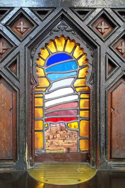 Partiamo da Toledo con lo stesso treno Ave che ci porterà a Madrid in circa 30 min. La stazione di Toledo del 1919 contiene tanti elementi della decorazione spagnola dalle vetrate colorate ai rivestimenti murari. Anche la parte biglietteria ricorda vagamente nelle forme la ricerca stilistica del legno scolpito. Le chiusure in maiolica degli sportelli colorate sono molto caratteristiche. Mi viene alla mente Gaudì...