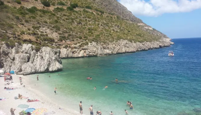 La nostra idea è trascorrere la giornata alla Riserva naturale dello Zingaro. Ci sono due sistemi per farlo, via terra oppure via mare. Noi scegliamo il primo. Lasciamo la nostra macchina in un grande parcheggio sterrato, a pochi metri dall'ingresso Nord della Riserva. Biglietto di ingresso: adulti 5 euro e la nostra bimba (6 anni) gratis, anche se sul sito ho visto che i bambini fino a 14 anni pagano 3 euro.