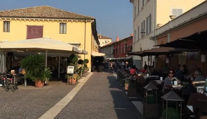 La struttura si trova all'uscita dell'autostrada, dista dal centro città 2 km e dal parco divertimenti di Gardaland solo 8 km. I mezzi publici a disposizione in questo periodo non sono moltissimi ma avendo a disposizione lo scooter non ci facciamo tanti problemi, ed una volta piazzato il camper, s' inizia il tour! Il pomeriggio, accompagnati da un cielo a tratti nuvoloso, ci dirigiamo verso il centro storico di Peschiera del Garda, veniamo subito circondati dai suggestivi vicoli dei sui bastioni con una miriade di negozietti, ristoranti, palazzi storici, piazze, chiese e imponenti strutture militari. Peschiera può essere chiamata anche città fortificata, non solo per la Fortezza che è uno dei gioielli architettonici della città, ma per tutte le strutture militari al suo interno, circondate da mura e baluardi.