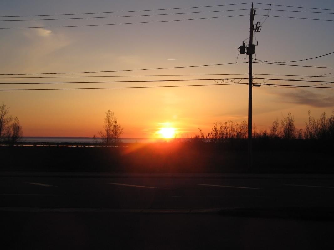 La traversata dura un'ora e mezza che per fortuna trascorre in fretta e l'arrivo a Rivière du Loup avviene alle 15,30; da qui riprendiamo la macchina e procediamo per altri cento chilometri prima di arrivare all'entrata di RIMOUSKI posta sulla riva sud dell'estuario del San Lorenzo e che si sviluppa da ovest a est per circa 12 km: conta 45.000 abitanti ca. ¼ dei quali sono studenti che frequentano gli istituti Marittimo e di Biotecnologie marittime. Arriviamo in breve al nostro hotel sito nella zona di Pointe-au-Père denominato "Au Soleil Cochant" (62E) condotto da una coppia molto gentile, veramente ottimo per la comodità, la pulizia e la cura dei particolari, dove ci fermiamo per un breve riposo fino alle 19,30 quando, su indicazione dei gestori, ci rechiamo a cena nella zona del porto presso il ristorante La Marina. Ci accomodiamo in una veranda sul fiume e ordiniamo dei deliziosi piatti a base di pesce: tramezzini con polpa di granchio e bacon con patate fritte, verdure cotte (broccoli, carote, zucchine), insalata con peperoni, riso bollito con salsa di granchio, una zuppa cremosa con tre tipi di pesce in terracotta gratinata al forno (43 E). Veramente eccezionale a conclusione di un'altra buona giornata. Quando rientriamo faccio in tempo a scattare una foto del sole che sta tramontando sull'acqua proprio davanti al motel (da qui il nome appropriato!).