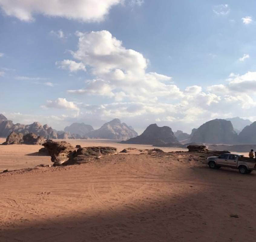 Colazione e partenza presto alle 8 per il deserto del WADIRUM, arrivato al campeggio mi rilasso con un buon tea che i beduini mi offrono , poi parto per immergermi nel pieno del deserto con loro, tra Dune ,viste mozzafiato arrivo in un tenda , tipica ,dove mi offrono un altro tea, metto un turbante del deserto in testa e si riparte fino alla sera alla scoperta di questo fantastico deserto!