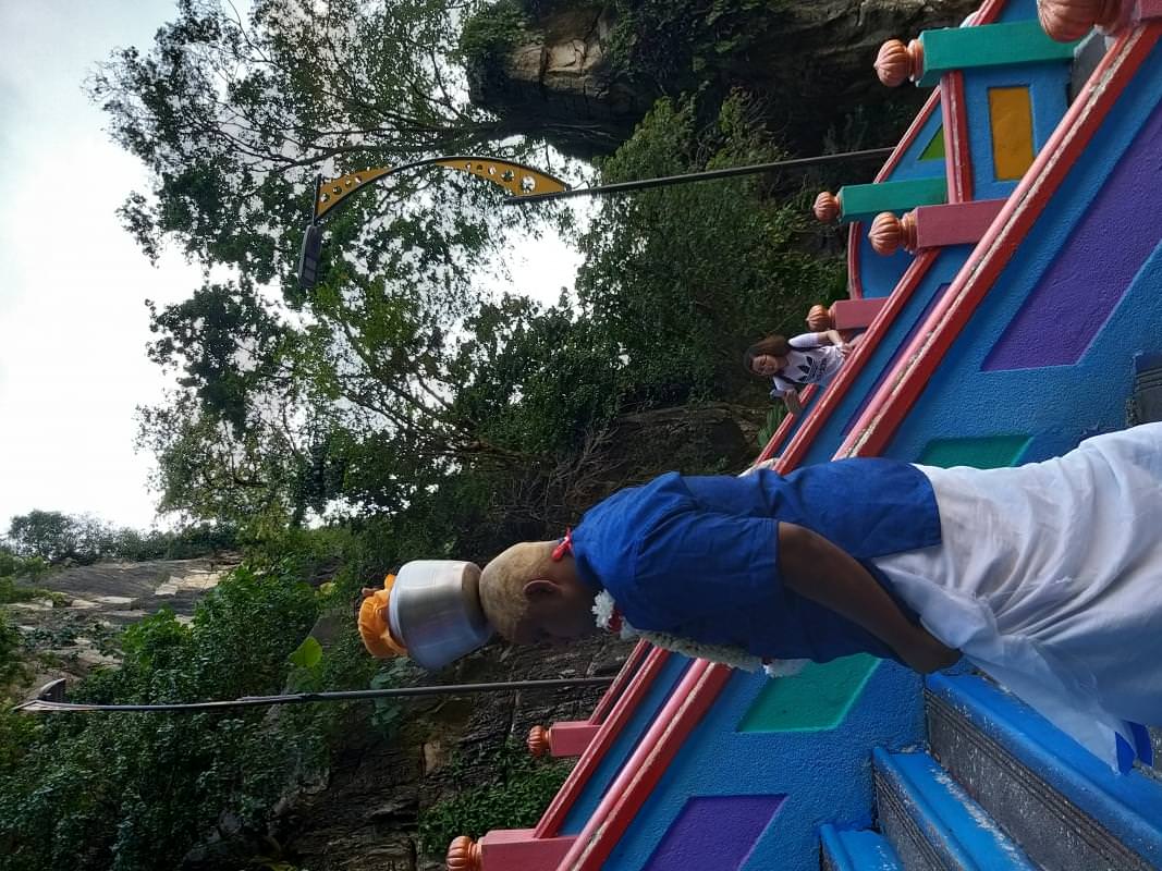Quasi 300 scalini di tutti i colori a dividerci dai templi all'interno della grotta, ma in fondo non sono faticosi da salire. 5 minuti e siamo all'ingresso. Nessun biglietto da pagare, ci è richiesto soltanto di coprire le gambe con un pareo. (Se non ne avete uno pagando un ringgit potrete noleggiarlo.) Molti fedeli portano doni e si fanno benedire dai sacerdoti. E' bello assistere a questa processione, sembra quasi di farne parte. Anche se ciò che vi colpirà di più saranno i colori e le architetture.
