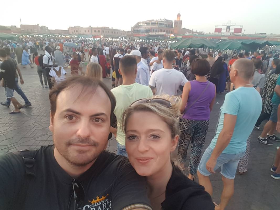 Dopo una fantastica colazione al Sawadi ripartiamo per la vicina Ouarzazate, La Mecca del cinema marocchino. In realtà noi ci fermiamo per un altro caffè, uno sguardo ai negozietti più curati che altrove e sopratutto per la visita alla Kasbah Taourit. L'ingresso è a pagamento, è più grande delle altre visitate e salendo i diversi piani le stanze aumentano in decorazioni e affreschi. Senza dubbio una meta da visitare ma il restauro ha tolto un po' di fascino e, sopratutto, critica assoluta alle autorità che lasciano fantomatiche guide all'ingresso zelanti e maleducate, più difficili di altre ad essere allontanate. Terminata la visita proseguiamo per la nostra prossima meta, la ben più famosa Kasbah d'Ait Ben Haddou. Già la sua vista da lontano incanta e ancor di più aggirarsi fra le strette vie racchiuse fra le pareti di fango ricordando le scene di un te nel deserto, del Gladiatore e del Gioiello del Nilo. Bellissima e a ragione inserita fra i patrimoni dell'UNESCO. La nostra giornata non è finita, ci attende ora la traversata delle montagne dell'Atlante che ci porterà a Marrakech. I chilometri non sono moltissimi... ma si procede a rilento e la salita al passo del Tizi n'Tichka impegnativa fra camion e somari. Dopo la sosta al passo per la foto di rito affrontiamo la grande discesa fino a raggiungere Marrakech. Entrare in città è uno shock vero e proprio. Un grande caos. Diventa difficile guidare e trovare la direzione giusta poiché anche il navigatore si perde nelle vie più strette. Tentando di andare a intuito ci siamo ritrovati nell'area vietata e peggiore della Medina, ma il fortuito intervento della Polizia ci ha aiutato a ritrovare la strada buona per raggiungere la porta d'ingresso dove ci attende l'uomo del nostro riad. Voglio spendere qualche parola sul Riad Palais Sebban per la gentilezza del personale e per la perfezione dei servizi. Dal parcheggio, alla gestione bagagli, alla bellezza, cura e pulizia del riad. Un vero gioiello della medina a pochi passi dalla famosa Jemaa el fna. Il tempo di una doccia e al calar del sole siamo già fuori per un primo assaggio della vera anima di Marrakech. Jemaa el fna è difficile da raccontare. E' bella? in realtà no. C'è qualcosa di particolare da vedere? No. Eppure vi catturerà in ogni momento della giornata sopratutto la sera, dove l'intera città sembra riunirsi. Suoni, odori, colori e la folla attorno ai tanti artisti di strada vi resteranno impressi. Stereotipo di un intero Paese. Spettacolari le tante bancarelle di street food che animano la piazza, assolutamente da provare, e, se siete buone forchette, resterete a bocca aperta davanti alle lumache e alle testine di agnello! Noi ne abbiamo approfittato e senza subire conseguenze, quindi il consiglio è di non pensare troppo alla pulizia e godersi una cena irripetibile.