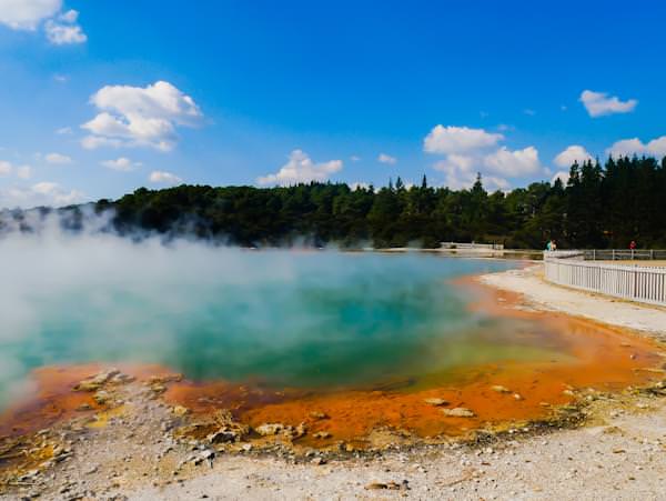 Curiosi di queste attività legate alla geotermia, decidiamo di iniziare la giornata a Wai-O-Tapu Thermal Wonderland: un posto surreale che presenta un caleidoscopio di colori e pozze di fango in ebollizione. L'entrata costa $32,5 per persona.