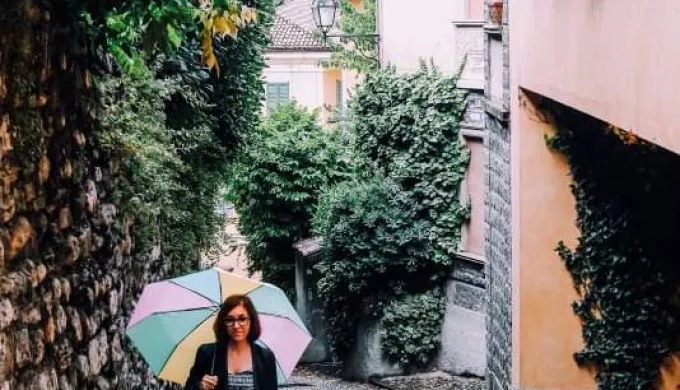 Arriviamo a Menaggio. Dovrebbe essere uno dei borghi più belli. Con questa pioggia pure lui è inzuppato. Nel parcheggiare, un signore anziano ci viene contro con l'auto. Invece di fermarsi per accertarsi del danno, accelera e sparisce. Marco lo insegue e lo raggiunge. Il signore lo manda a quel paese. Il Bel Paese.